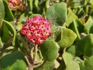 Red × Pink Sand Verbena (Abronia Maritima × Umbellata) is a plant with moderate care difficulty. It requires moderate watering and moderate light.