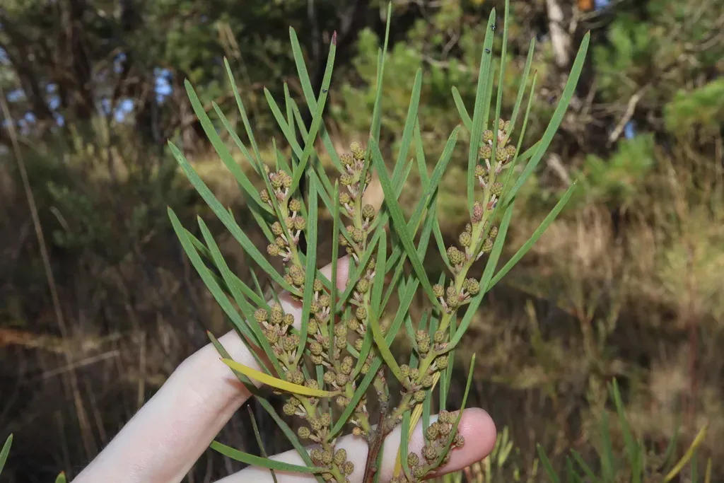 Swamp Wattle (Acacia Elongata) is a perennial shrub in the Fabaceae family with easy care difficulty. It requires moderate watering and full sun or partial shade light in USDA hardiness zones 9-11. This plant is safe for cats and dogs.