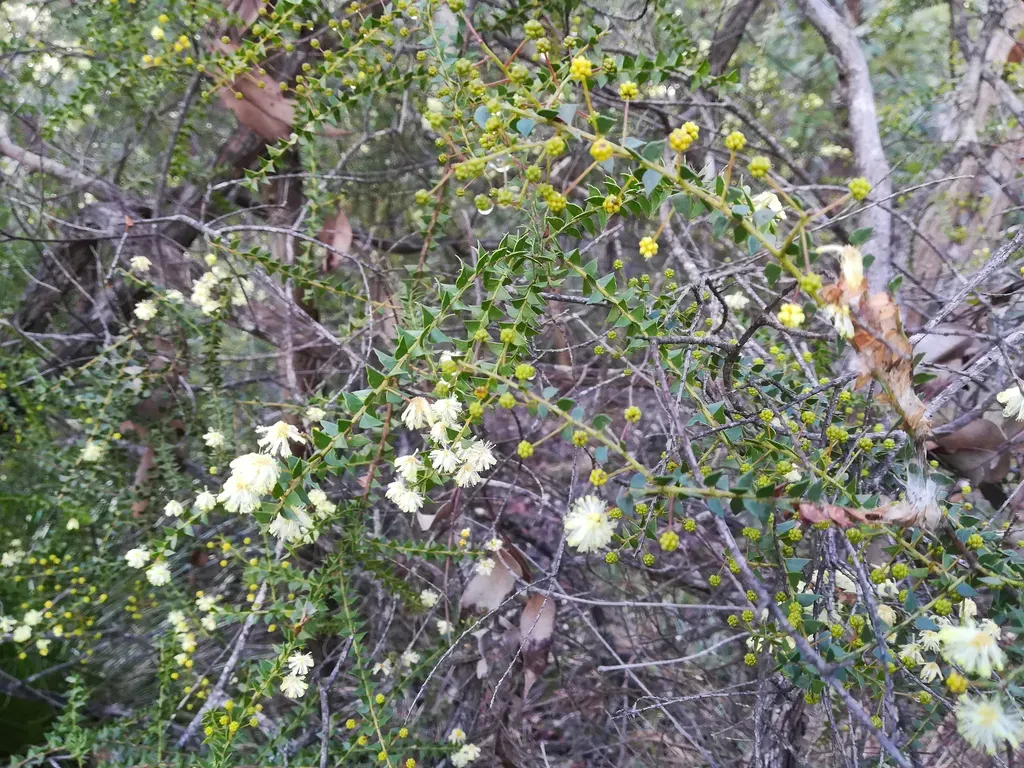 Yellow Prickly Moses (Acacia Hubbardiana) is a perennial shrub in the Fabaceae family with moderate care difficulty. It requires moderate watering and full sun or partial shade light in USDA hardiness zones 9-11. This plant is safe for cats and dogs.