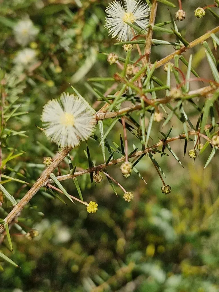 Juniper Wattle (Acacia Ulicifolia) is a perennial shrub in the Fabaceae family with easy care difficulty. It requires low watering and full sun or partial shade light in USDA hardiness zones 8-11. This plant is safe for cats and dogs.