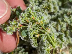 Achyronychia cooperi is a flowering plant native to the Mojave and Sonoran Deserts, known for its unique blue foliage and cream flowers.