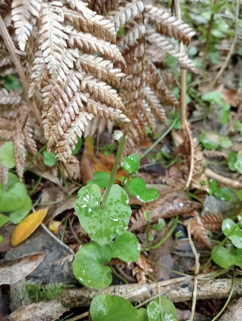 Acianthus sinclairii is a terrestrial orchid endemic to New Zealand, known for its single heart-shaped leaf and multiple translucent green flowers tinged with maroon.