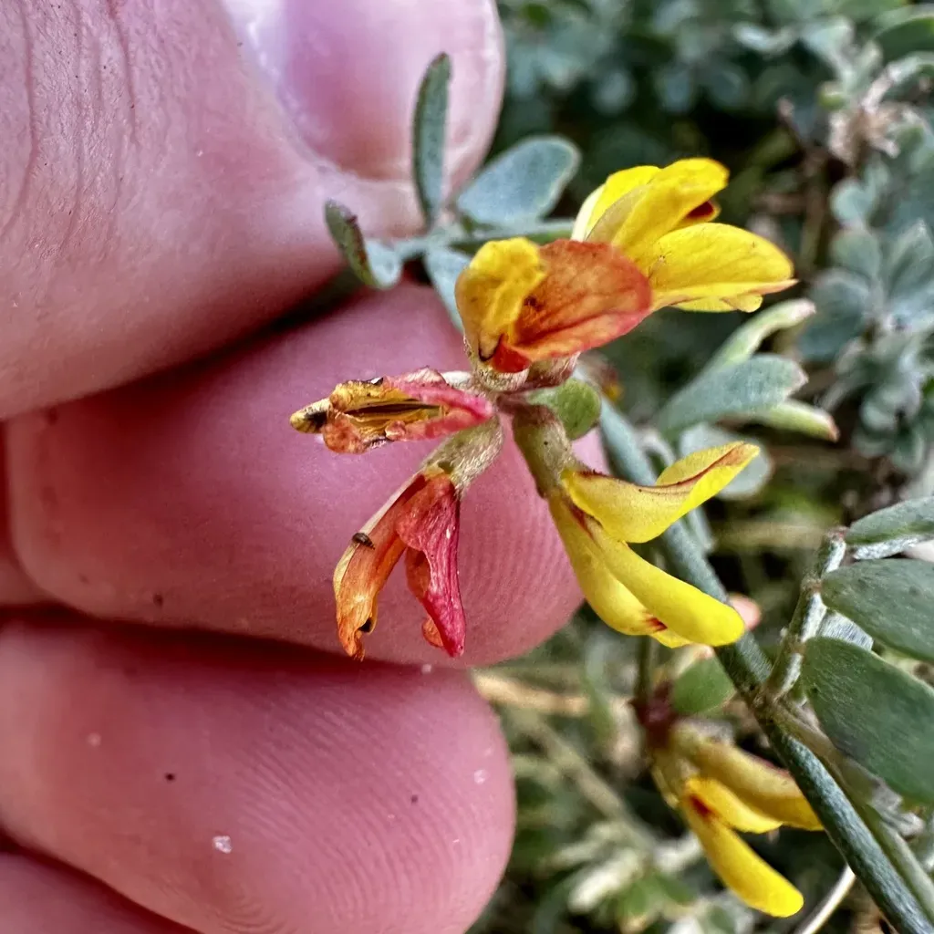 Nuttall's Lotus (Acmispon Prostratus) is a annual herb in the Fabaceae family with easy care difficulty. It requires low watering and full sun light in USDA hardiness zones 9-11. This plant is safe for cats and dogs.