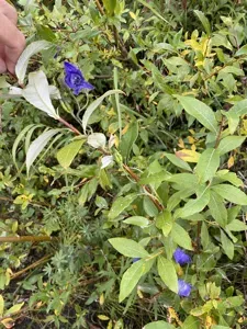 Aconitum delphiniifolium is a perennial herbaceous plant known for its dark blue to purple hooded flowers resembling larkspur.