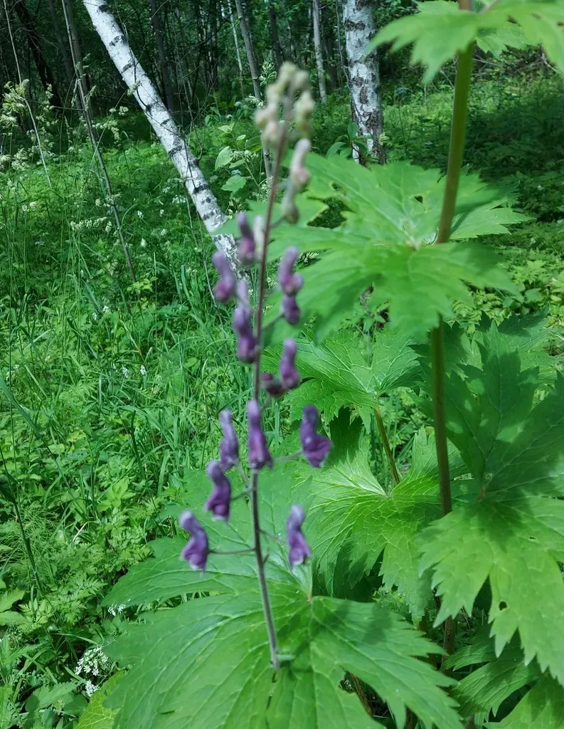Aconitum septentrionale is a striking perennial herb known for its tall lavender-blue flower stalks and unique large draped sepals.