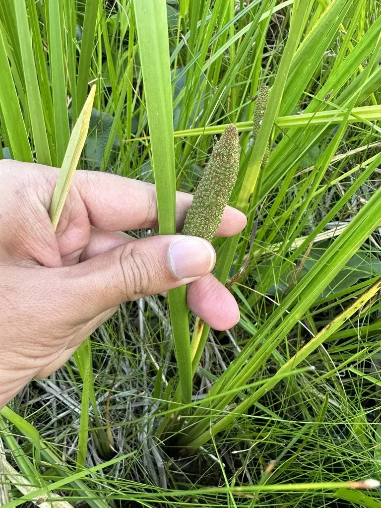 Acorus americanus is a perennial, aquatic herb native to North America, known for its sword-shaped leaves and aromatic properties.