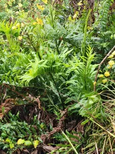 A large, evergreen fern species known for its tall, leathery fronds and habitat in mangrove swamps and coastal wetlands.
