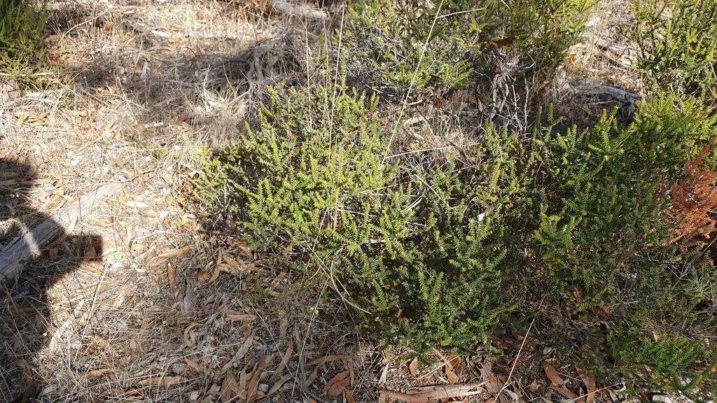 Acrotriche fasciculiflora is a rigid shrub native to South Australia, belonging to the family Ericaceae, known for its lance-shaped leaves and pink berries.