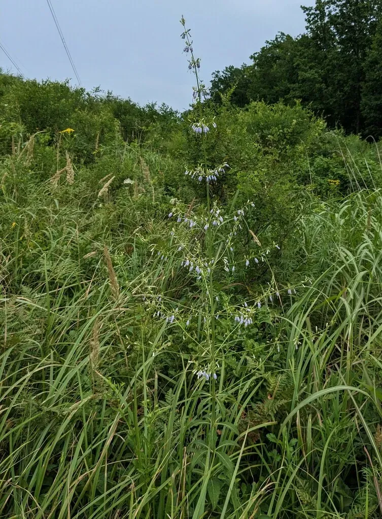 Adenophora triphylla is an erect, herbaceous, perennial plant producing one or more unbranched stems up to 150 cm tall.