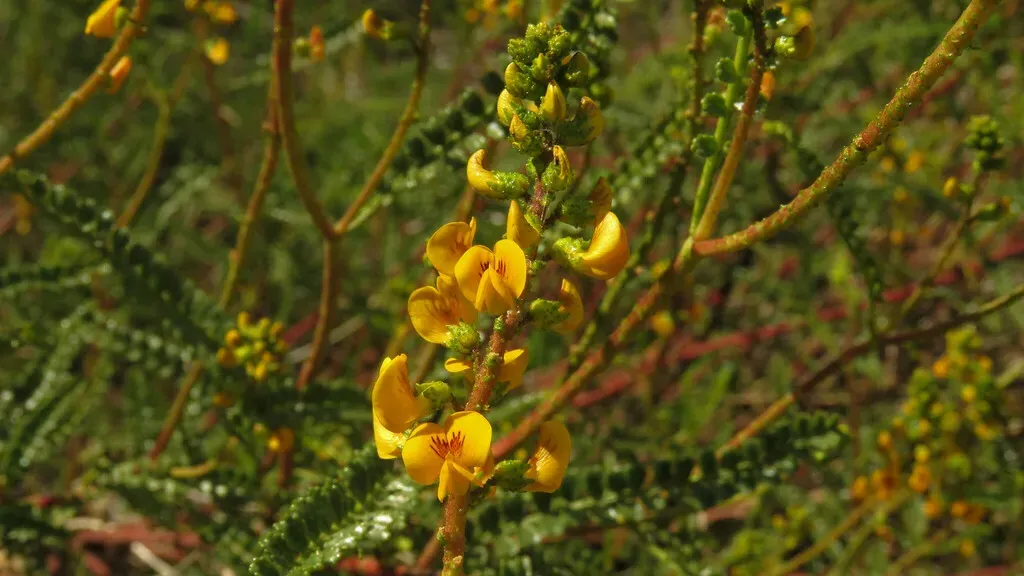 Paramela (Adesmia Boronioides) is a perennial shrub in the Fabaceae family with moderate care difficulty. It requires moderate watering and full sun or partial shade light in USDA hardiness zones 7-10. This plant is safe for cats and dogs.