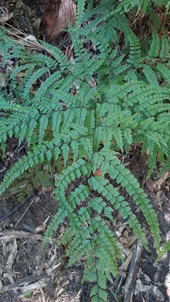 A tall, widely creeping perennial fern known for its delicate, feathery fronds and distinctive black stems.