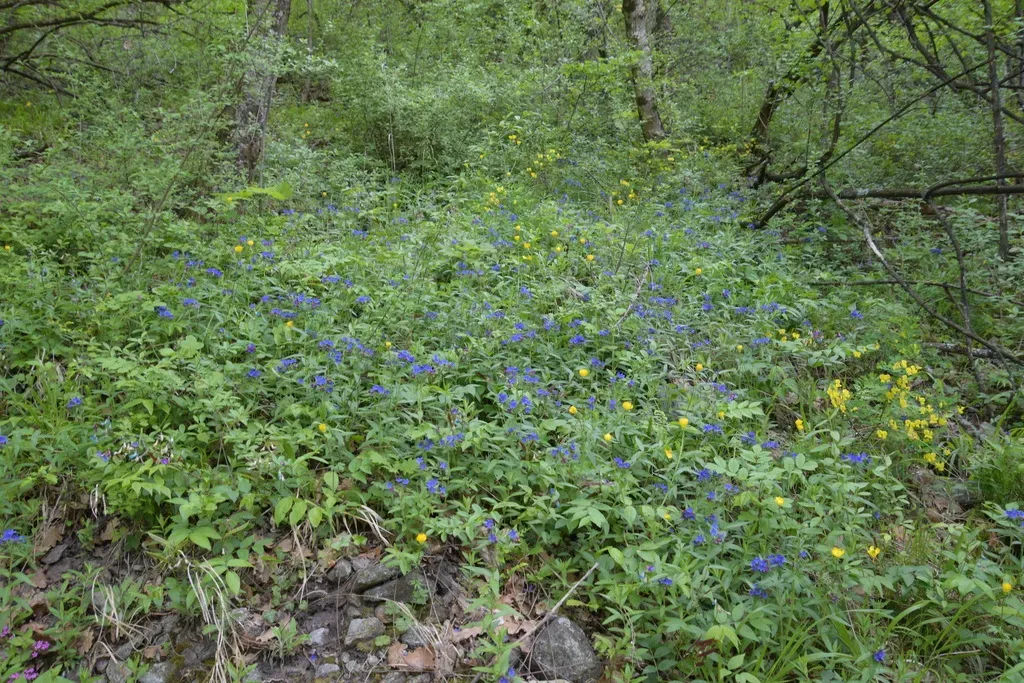 Aegonychon purpurocaeruleum is a perennial herbaceous plant known for its purple-blue flowers and creeping growth habit.