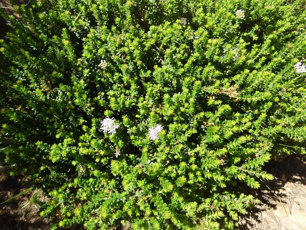 Agathosma ovata is a very hardy, evergreen, small shrub with small dainty, leathery aromatic leaves emitting a citrus scent when crushed.
