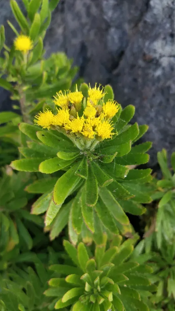 Allagopappus canariensis is a shrubby perennial plant native to the Canary Islands, known for its silvery-green lanceolate leaves and resilience in dry, rocky habitats.