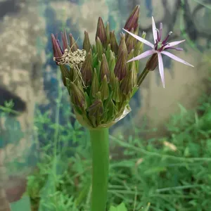 A striking perennial bulbous plant known for its large, star-shaped, mauve-pink flower heads resembling a starburst.