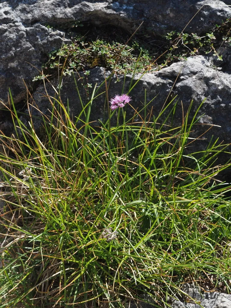 Mountain Garlic (Allium Lusitanicum) is a perennial bulb in the Amaryllidaceae family with easy care difficulty. It requires moderate watering and full sun or partial shade light in USDA hardiness zones 4-8. This plant is safe for cats and dogs.