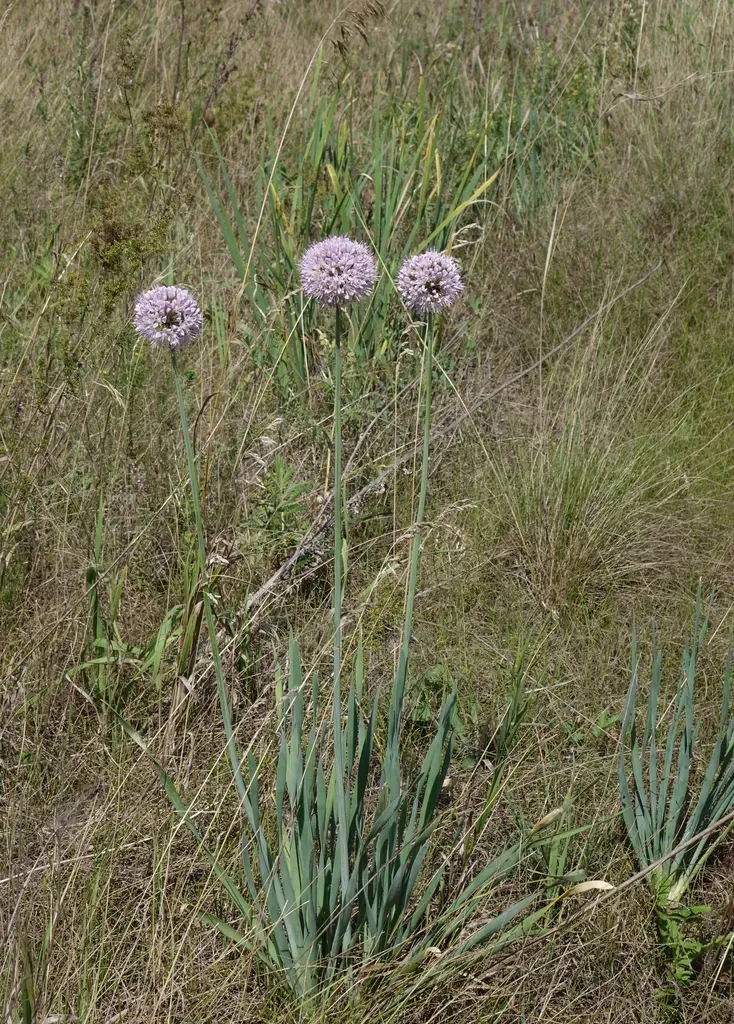 Allium senescens is a perennial bulbous plant known commonly as German garlic or aging chive, notable for its curly leaves and garlic-like odor.