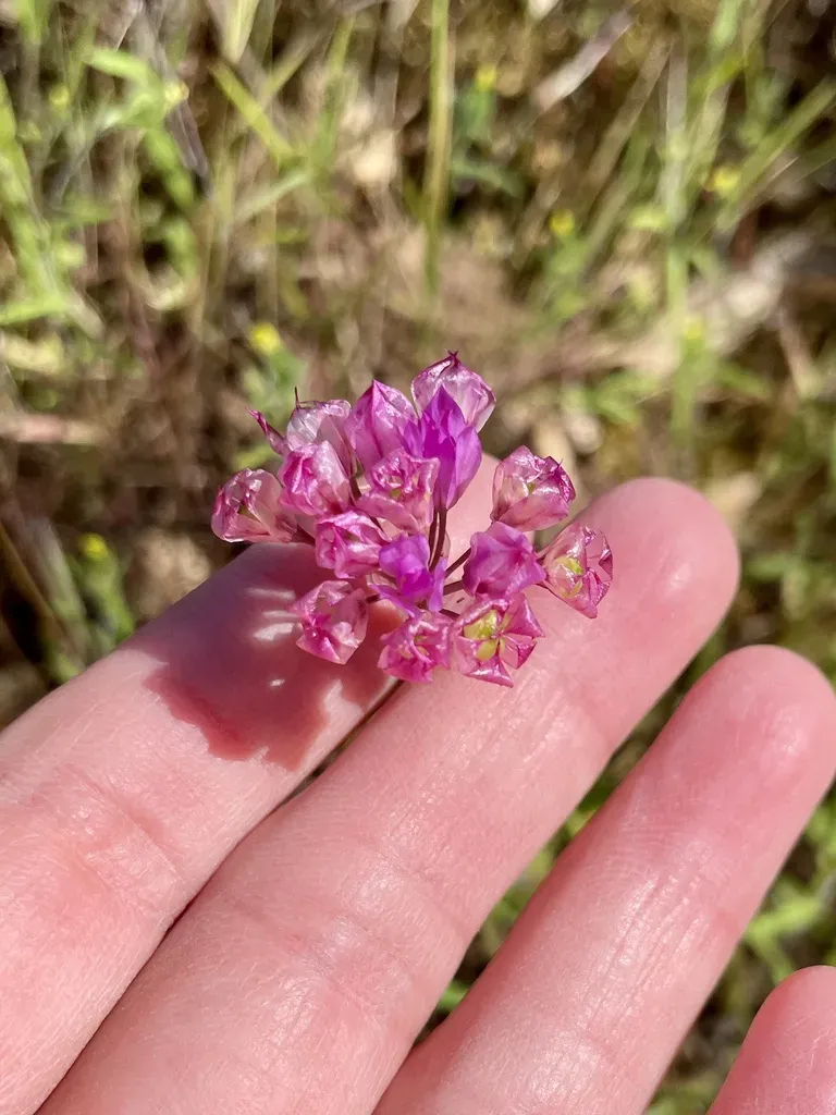 Allium serra is a perennial wild onion species endemic to California, characterized by its bulbous growth and distinctive flower clusters.