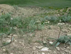 Allium tulipifolium is an Asian species of wild onion native to Xinjiang, Kazakhstan, and Altay Krai, found at elevations of 600–1000 meters.