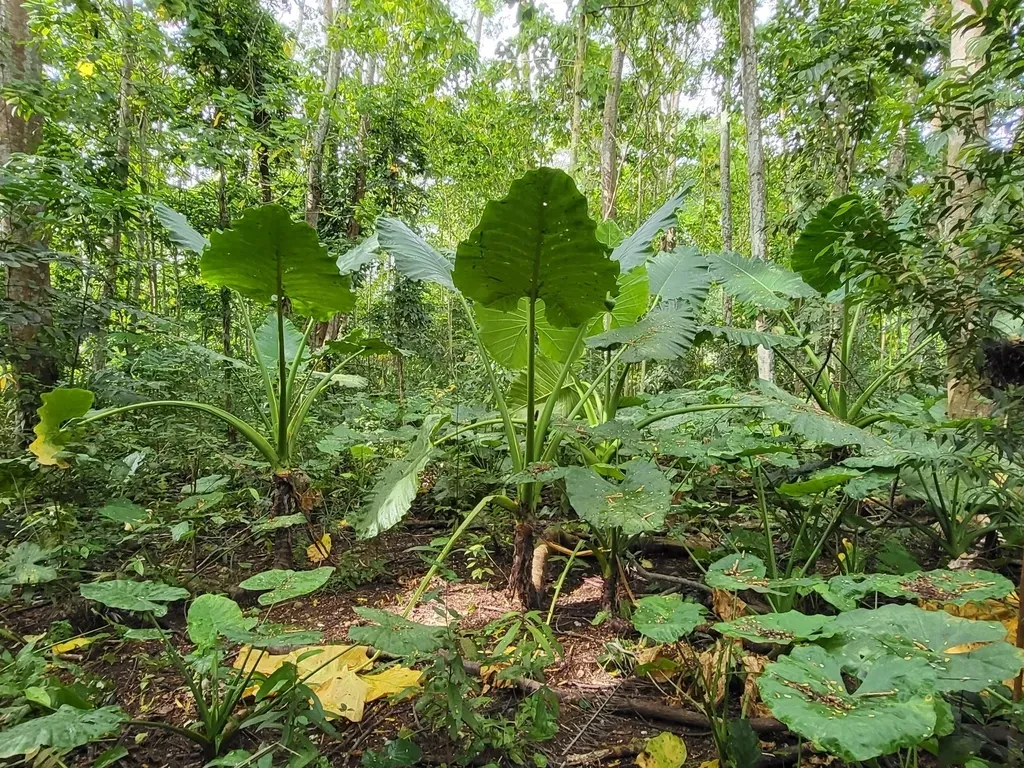 A large tropical perennial known for its massive, glossy, arrow-shaped leaves and upright growth habit.