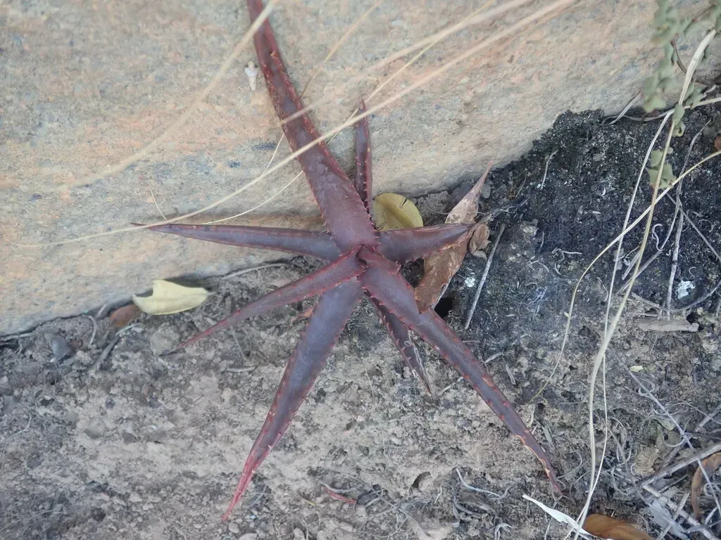Aloe chabaudii is an evergreen, succulent, perennial plant forming dense rosettes of grey-green to glaucous leaves, sometimes flushed with pinkish-red, and producing orange flowers.