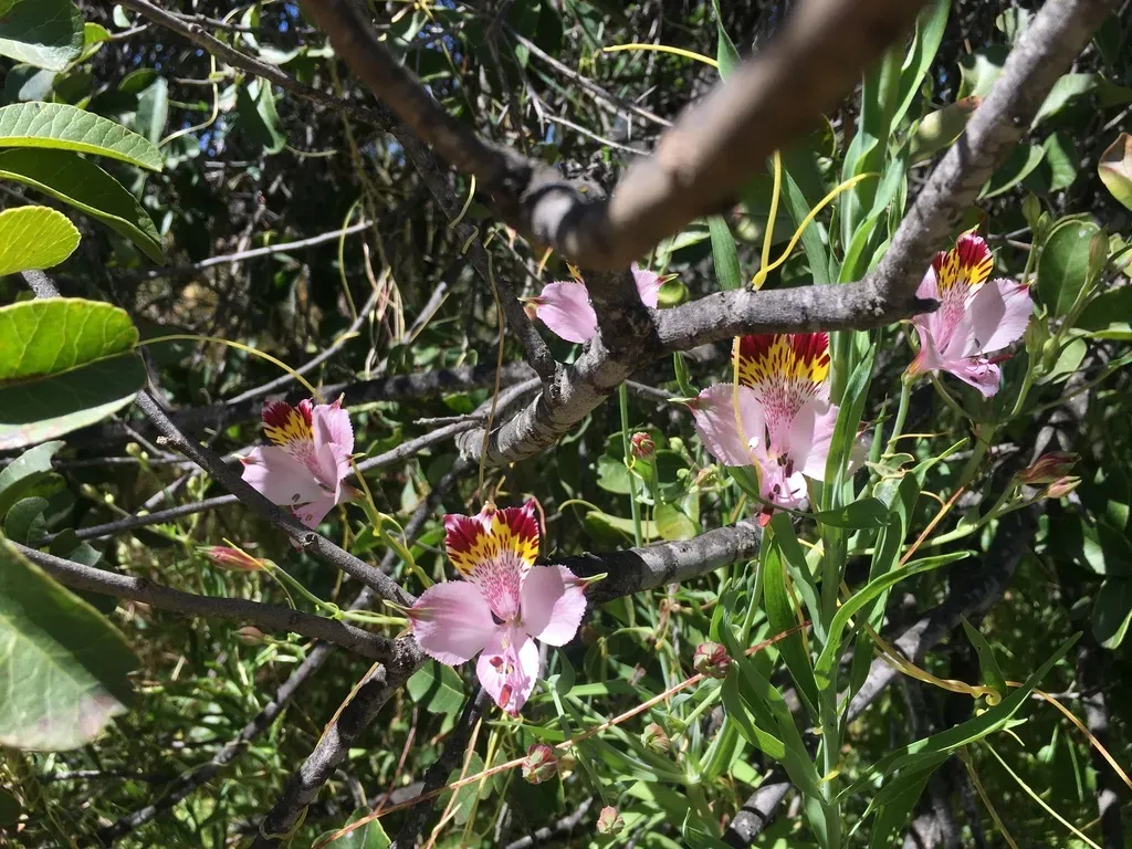 Alstroemeria pulchra is a tuberous perennial herbaceous plant native to Central and South Central Chile, known for its striking, colorful flowers resembling lilies.