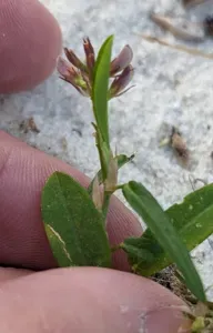 Alysicarpus vaginalis is a low growing annual to short-lived herbaceous perennial plant with numerous stems emanating from the rootstock, reaching 10-100 cm in length.