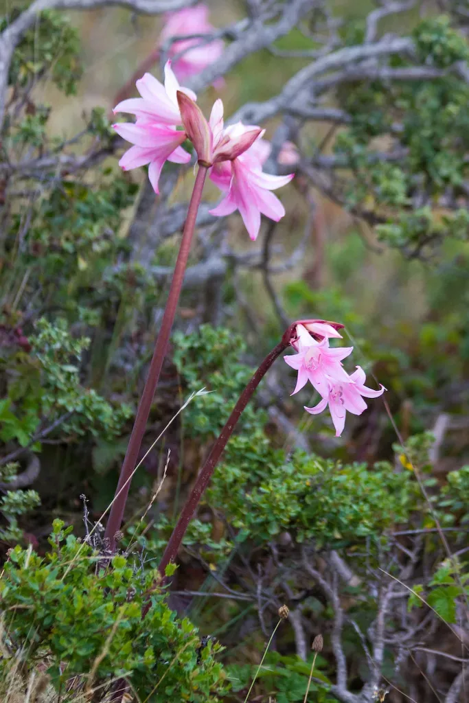 Amaryllis belladonna is a bulbous perennial known for its late summer to early fall blooming with trumpet-shaped, fragrant flowers in shades of pink, rose, and mauve.