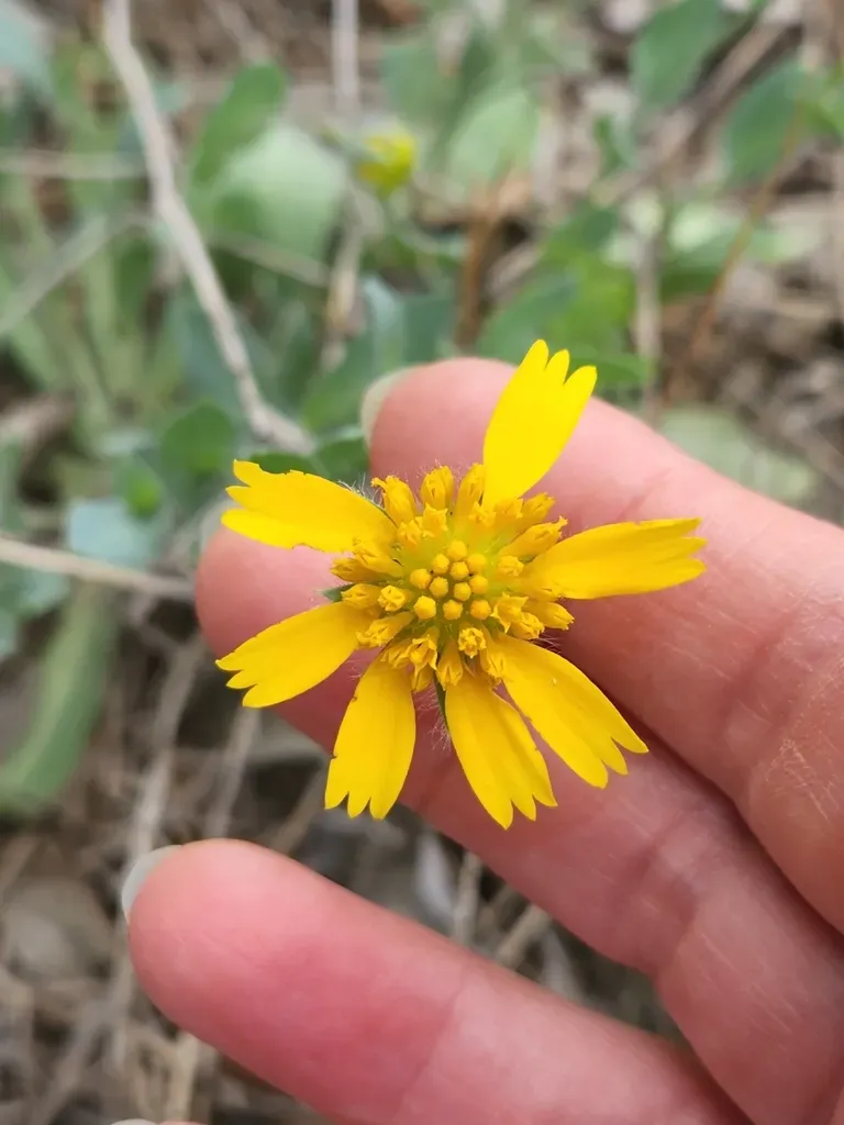 Amblyolepis setigera, commonly known as Huisache Daisy, is an annual wildflower native to Texas and northeastern Mexico, known for its bright yellow daisy-like flowers with orange centers.