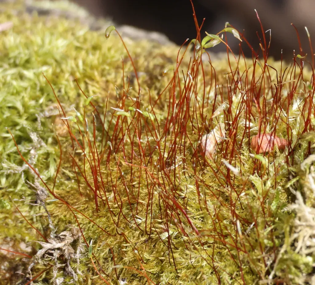 Amblystegium serpens is a moss species characterized by slender, stringy shoots forming mats, with leaves typically 0.5-1.0 mm long and curved capsules on red setae.