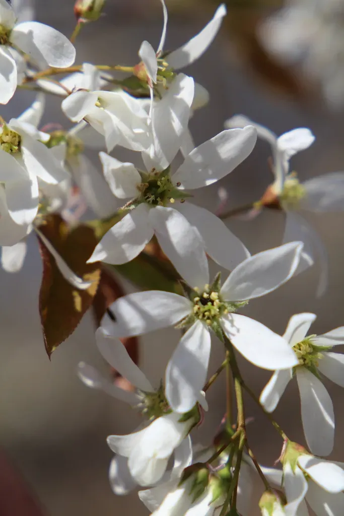Amelanchier laevis is a deciduous shrub or small tree native to North America, known for its multi-trunked growth, white spring flowers, and edible berries.