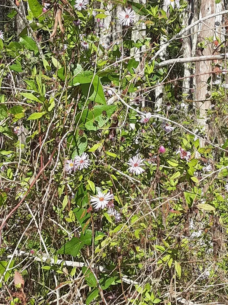 Ampelaster carolinianus is a sprawling herbaceous perennial vine known for its ability to climb and produce abundant flowers, native to marshy shorelines and swamp edges.