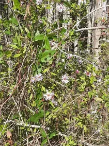 Climbing Aster (Ampelaster Carolinianus) is a perennial vine in the Asteraceae family with moderate care difficulty. It requires moderate watering and full sun or partial shade light in USDA hardiness zones 6-10. This plant is safe for cats and dogs.