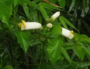 Amphilophium crucigerum is a vigorous, perennial, climbing vine native to tropical and subtropical regions of the Americas, noted for its distinctive cross-shaped fruit.