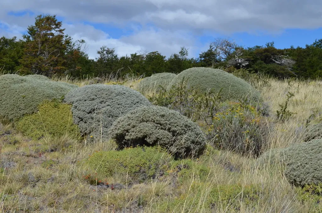 A spiny cushion-forming shrublet native to southern Chile and Argentina, growing 10-60 cm tall with trifid, silvery silky-hairy leaves.