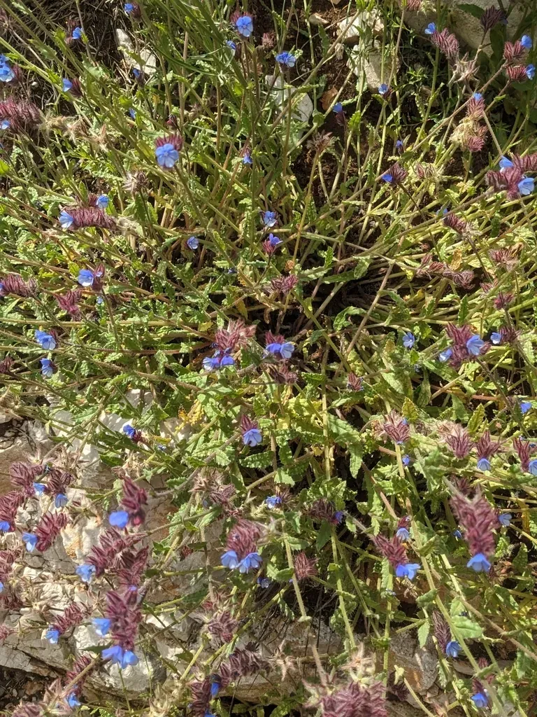Anchusa cretica is a flowering plant native to Crete, known for its striking blue flowers and herbaceous form.