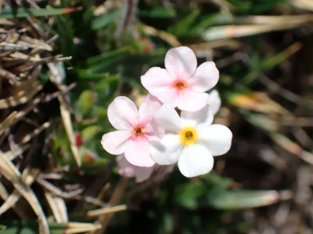 Sweet-flower Rock-jasmine (Androsace Chamaejasme) is a perennial herb in the Primulaceae family with moderate care difficulty. It requires moderate watering and full sun or partial shade light in USDA hardiness zones 3-7. This plant is safe for cats and dogs.