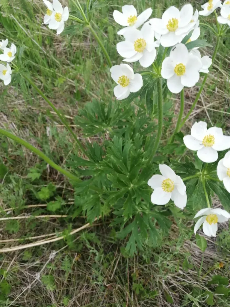 Anemonastrum crinitum is a robust, erect perennial flowering plant native to temperate regions of Siberia to Korea, characterized by a flowering stem 40-60 cm tall, with basal leaves that are long petiolate, light green, woolly-pubescent, and dissected into 3 to 5 segments.