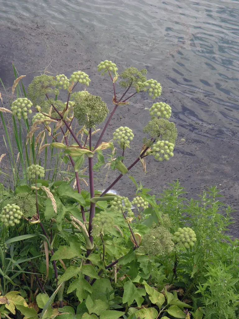 Angelica archangelica is a robust biennial or short-lived perennial herb from the carrot family, known for its aromatic properties and culinary uses.