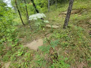 Angelica venenosa is a stout perennial herb native to the Eastern United States, known for its large compound leaves and white flowers arranged in flat-topped umbels.