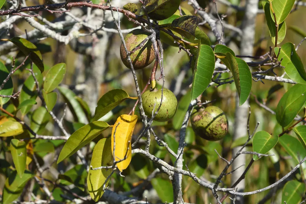 Annona glabra is an evergreen or semi-deciduous tropical tree known commonly as pond apple, typically growing 3-8 meters tall.