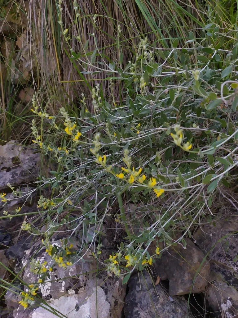 Anthyllis cytisoides is a compact, upright, tender, deciduous shrub with grey-green leaves and yellow flowers.