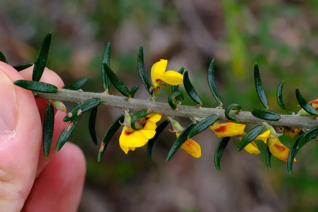 Aotus ericoides is a shrub species in the Fabaceae family, native to eastern Australia, known for its yellow pea flowers appearing in spring.