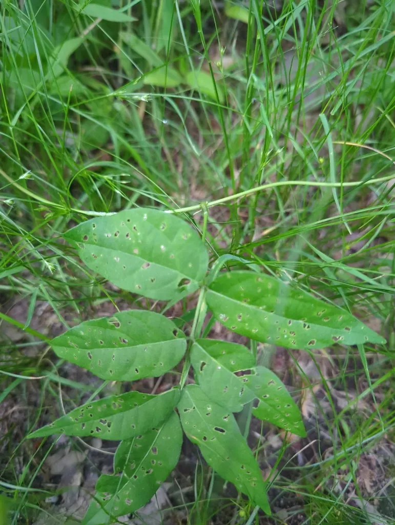 Apios americana is a native perennial vine in the legume family, known for its edible tubers and pea-like flowers.