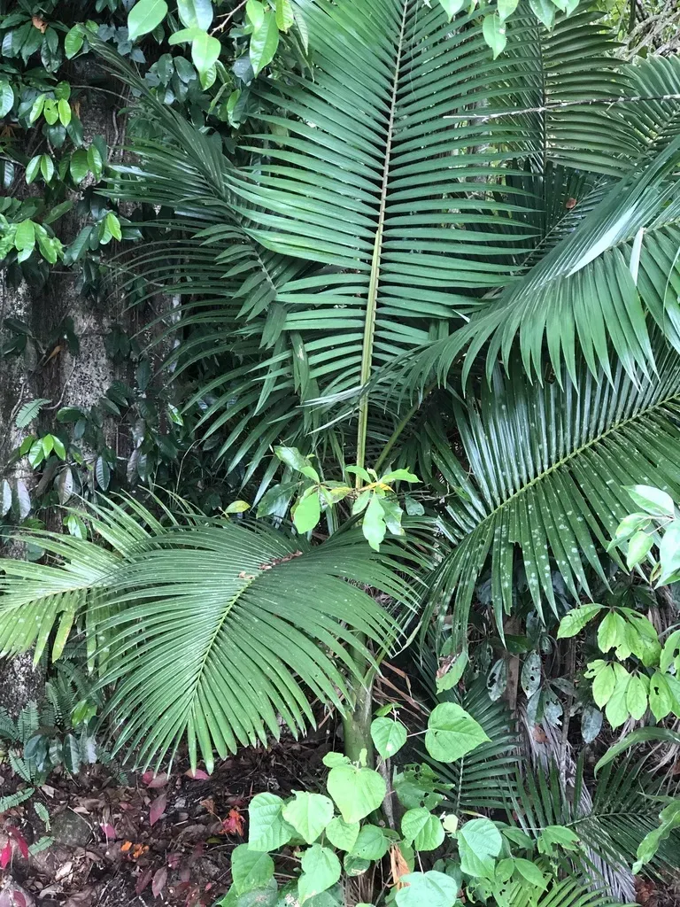 A tall, solitary palm tree native to Queensland, Australia, known for its sleek, straight trunk and a crown of feathery fronds.