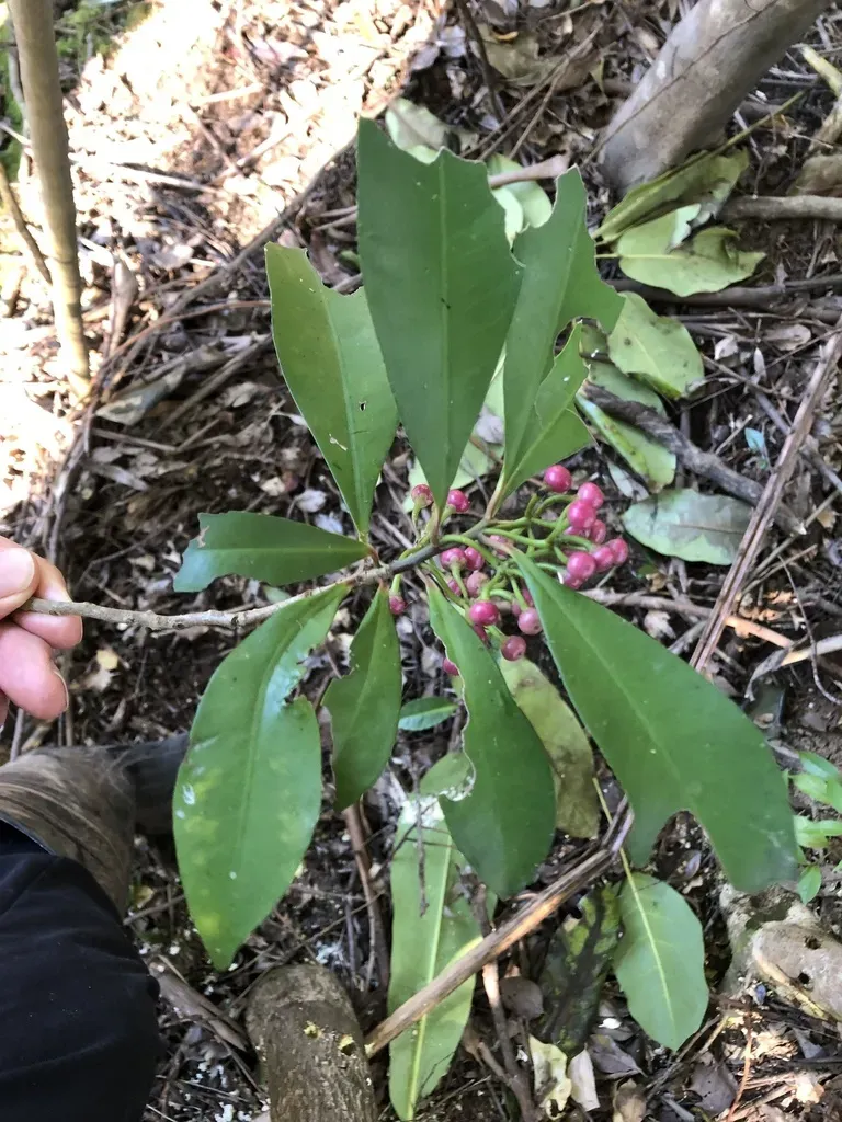 Ardisia elliptica is a tropical to semi-tropical broadleaf evergreen shrub or small tree.