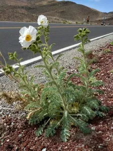Argemone corymbosa is a perennial herb native and endemic to California, particularly found in the Mojave Desert region.