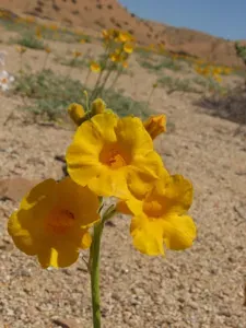 Argylia radiata is a perennial flowering plant in the Bignoniaceae family, native to South America, particularly Brazil, Chile, and Peru. It features broadleaf deciduous foliage and produces vibrant orange flowers in summer.
