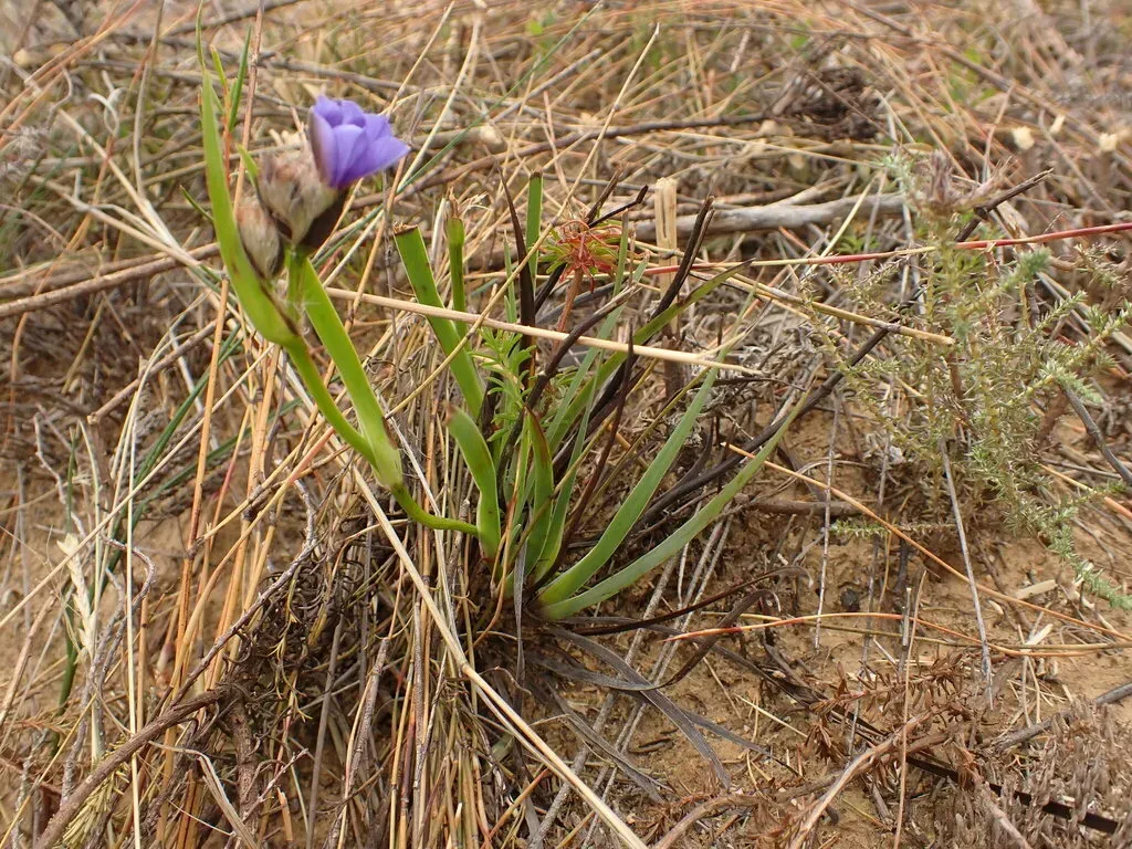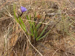 Aristea africana is a rhizomatous evergreen perennial native to southern Africa, known for its striking purple flowers and fringed silvery spathes.