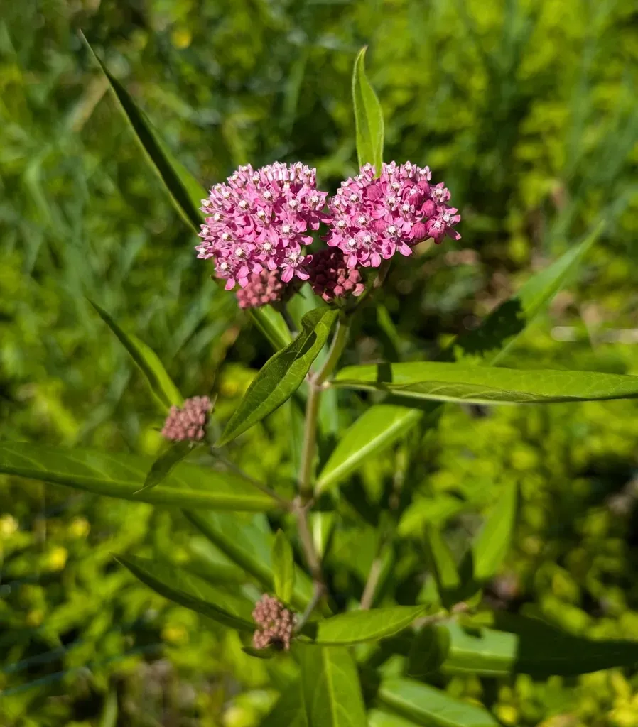 Asclepias incarnata is an upright, clump-forming perennial native to North America, known for its showy pink to mauve flower clusters and its value to pollinators, especially Monarch butterflies.